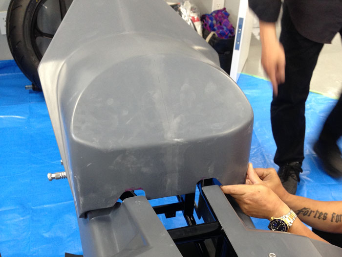 ライダー水谷さんがご自身のレコードホルダーマシンを持ってきていたので並べてじっくり見られました。このマシンのディメンジョンをベースにEV-01はスタートしました。