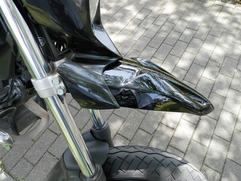 ショートフェンダーとヘッドライトカバーの間に若干隙間が出来ますが気になる方は市販の黒スポンジ(ウレタン)を間に挟み込めば見えなくなります。