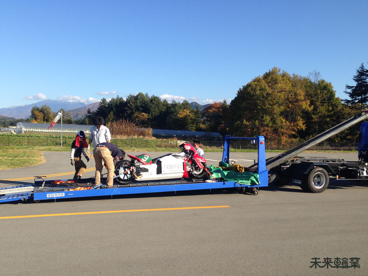 これも通常のバイクのようにハイエースに積んでというわけにはいかないので手間がかかります。