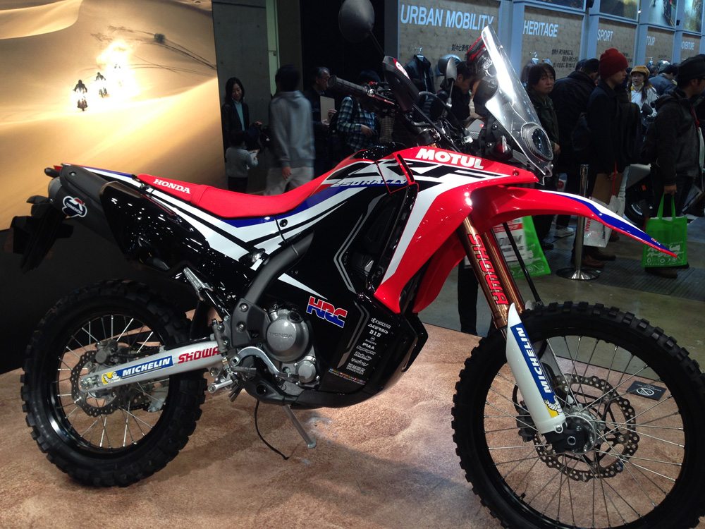 そしてステージ反対側の端には何かと話題のCRF250 Rally のショーカー。