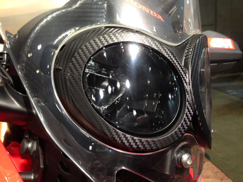 カーボン調シートをベタベタと荒っぽく貼ってぼやかしています。