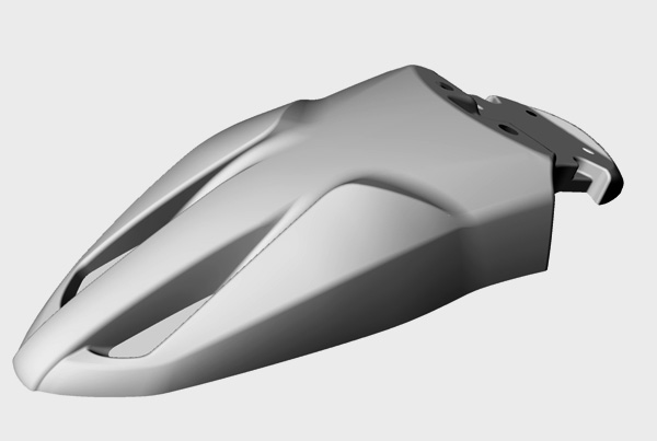 カラーを通してマウントされる外装部品なので手で測ったような精度でも充分です。寸法や断面形状などを綿密に測り、単体で撮影した写真と一緒に参考にしつつデータ化していきました。