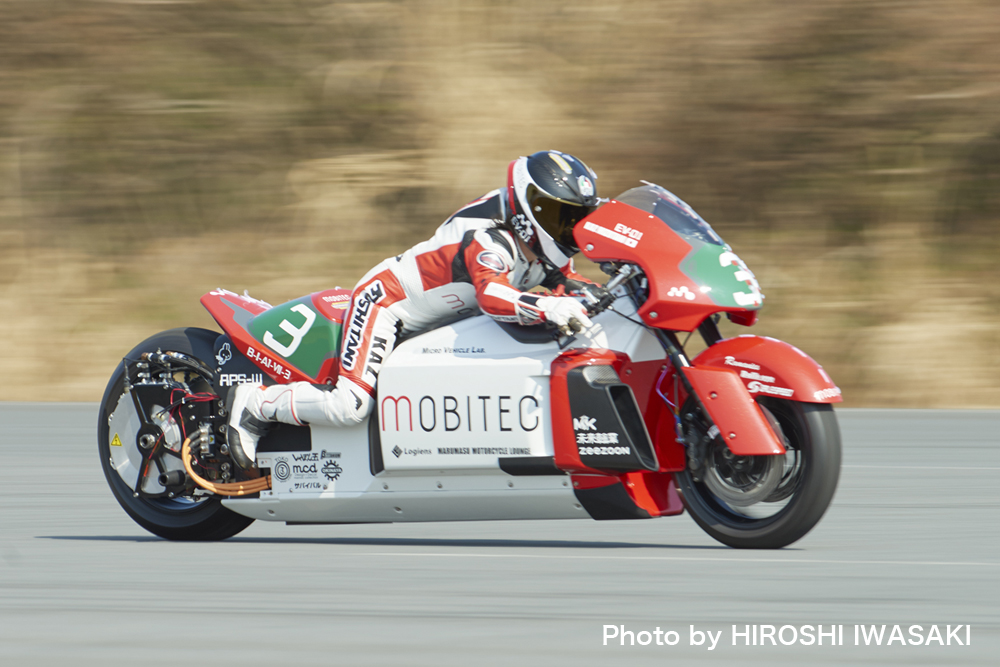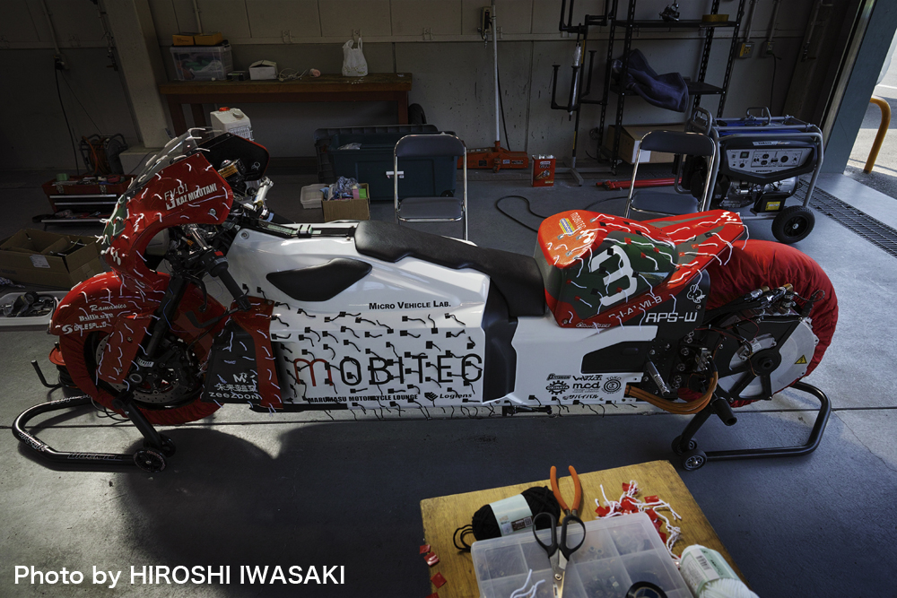 EV-01は通常のオートバイよりも車体が大きく、ソルトフラッツ上での横風対策のため