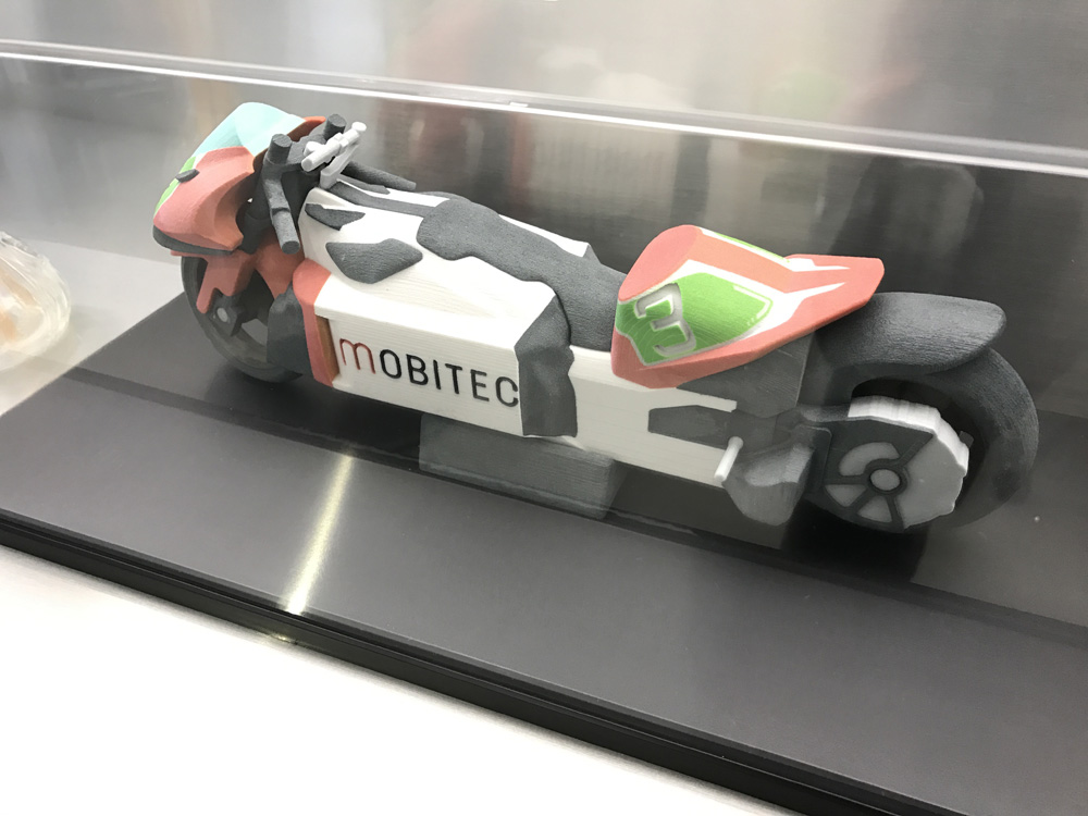 マシンの3Dデータをもとに石膏インクジェットタイプの3D出力機で作られたミニチュアでした。