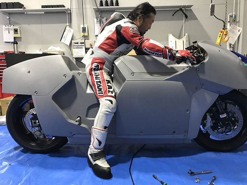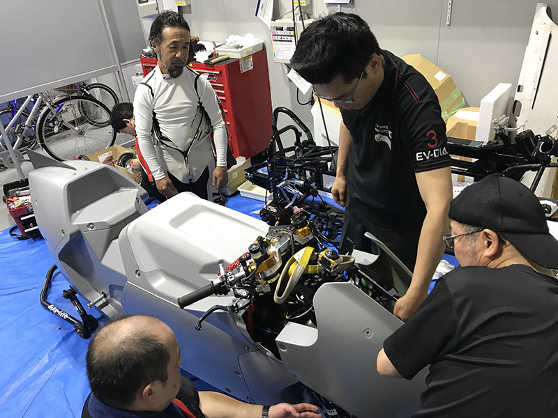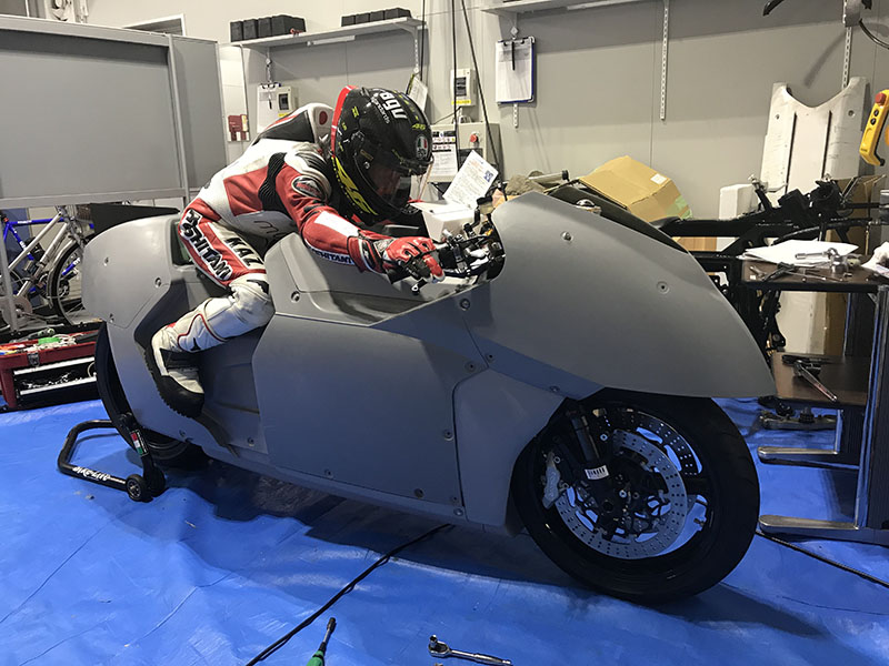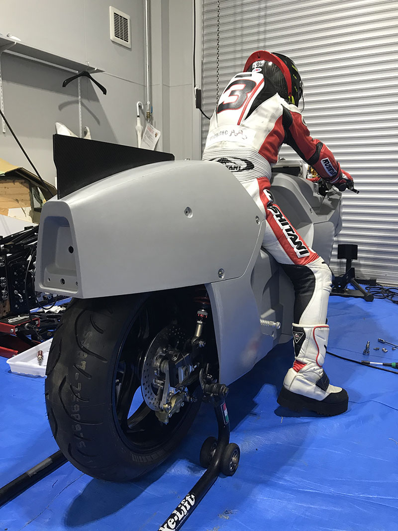 ライダーの水谷さんにレーシングポジションを取ってもらったり